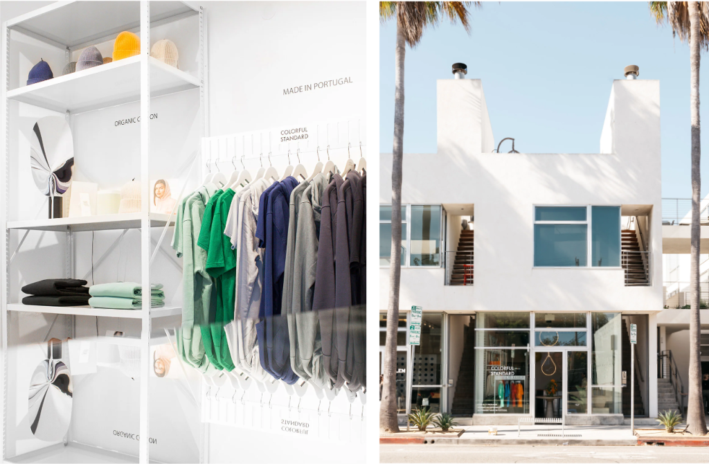 Lojas Colorful Standard – à esquerda 59 Rue du Temple, Paris; à direita 1121 ABBOT KINNEY BLVD, Los Angeles.